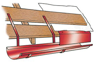 Держатели желоба устанавливаются на нижней доске обрешётки, учитывая правила монтажа водосточной системы. Чтобы обеспечить сохранность желоба при сходе снега с кровли, его устанавливают таким образом, чтобы край располагался на 30 мм ниже края кровельного покрытия.