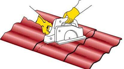 Листы металлочерепицы и профнастила перед укладкой требуют некоторой обработки, а именно, резки под конструкцию крыши. Для резки этого строительного материала следует использовать только специальные инструменты, но, ни в коем случае нельзя применять абразивный круг.