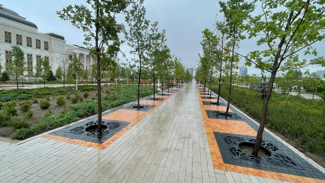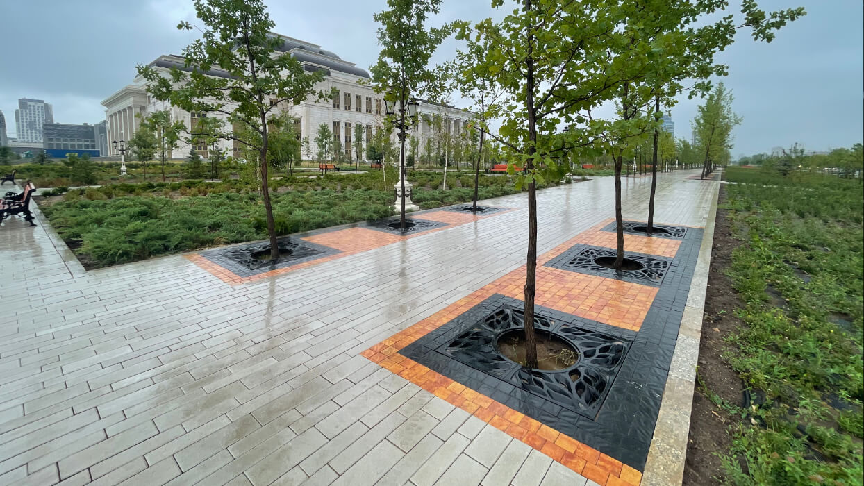 Использование решётки позволяет расширить площадь пешеходной зоны и придать пейзажу привлекательный облик.