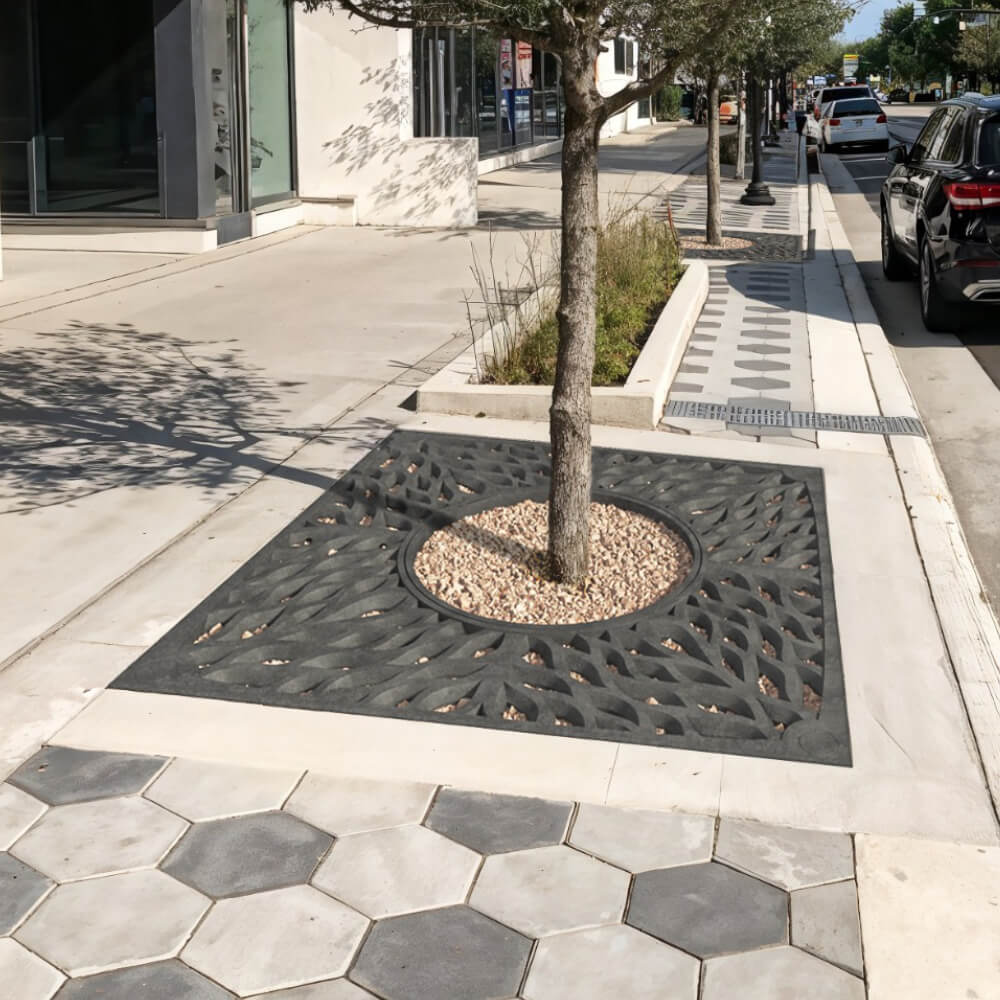 Использование решётки позволяет расширить площадь пешеходной зоны и придать пейзажу привлекательный облик.
