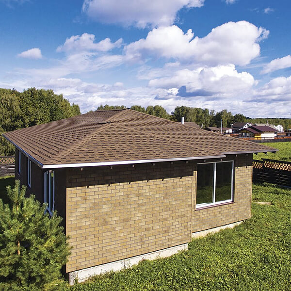 Плитка гибкая битумная для фасада Технониколь Хауберг коллекция Кирпич цвет Песчаный размеры 1000х250х3мм (в упаковке 20 штук общей площадью 2 м2).
