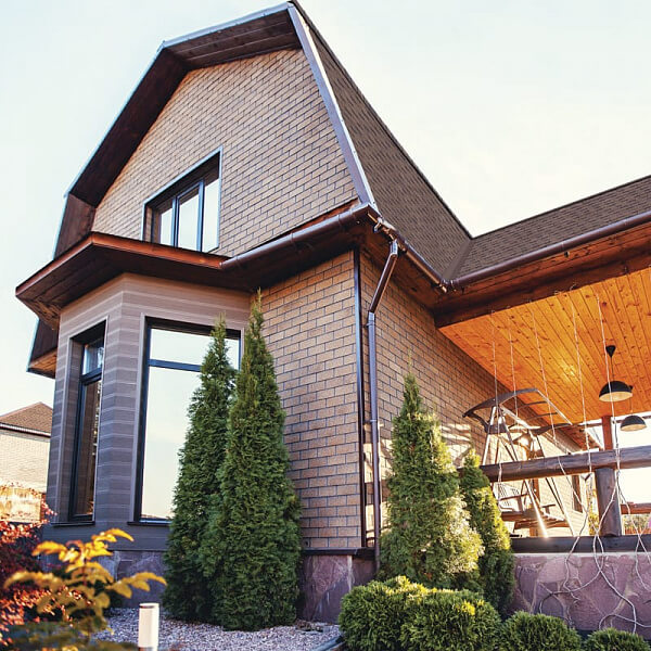 Контрастная природная расцветка сочетает в себе элегантность с практичностью и подходит для обрамления дверей и окон, оформления колонн и углов дома.