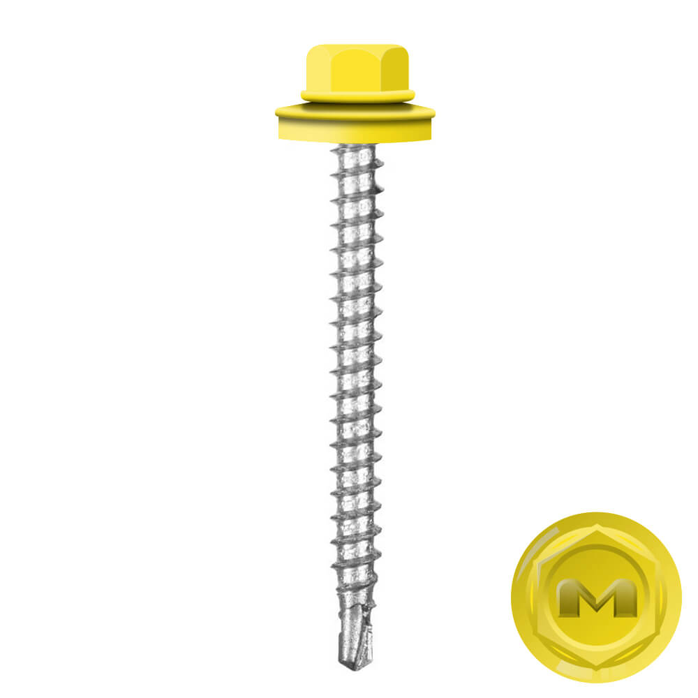 Кровельные саморезы Daxmer (Даксмер) по дереву цветом RAL1018 Желтый 4,8*50мм окрашиваются УФ-стойкой полиэфирной порошковой краской. Цинковое антикоррозийное покрытие обеспечивает длительный срок службы саморезов (не менее 25 лет). Специальная металлическая шайба с ЕРDМ - уплотнителем обеспечивает плотное прилегание профилированного металла (кровли) к деревянной обрешетке, а также препятствует попаданию влаги.