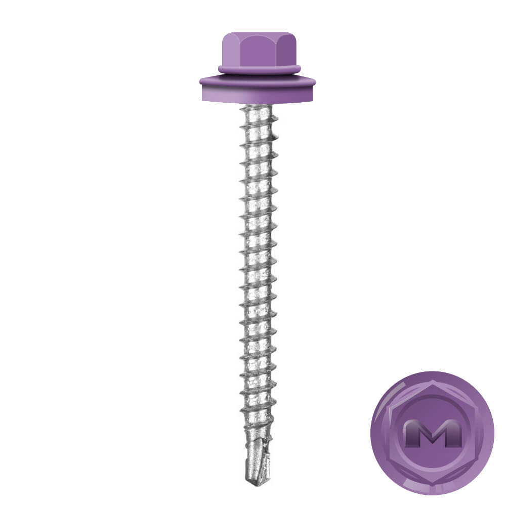 Кровельные саморезы Daxmer (Даксмер) по дереву цветом RAL4005 Сиреневый 4,8*50мм окрашиваются УФ-стойкой полиэфирной порошковой краской. Цинковое антикоррозийное покрытие обеспечивает длительный срок службы саморезов (не менее 25 лет). Специальная металлическая шайба с ЕРDМ - уплотнителем обеспечивает плотное прилегание профилированного металла (кровли) к деревянной обрешетке, а также препятствует попаданию влаги.