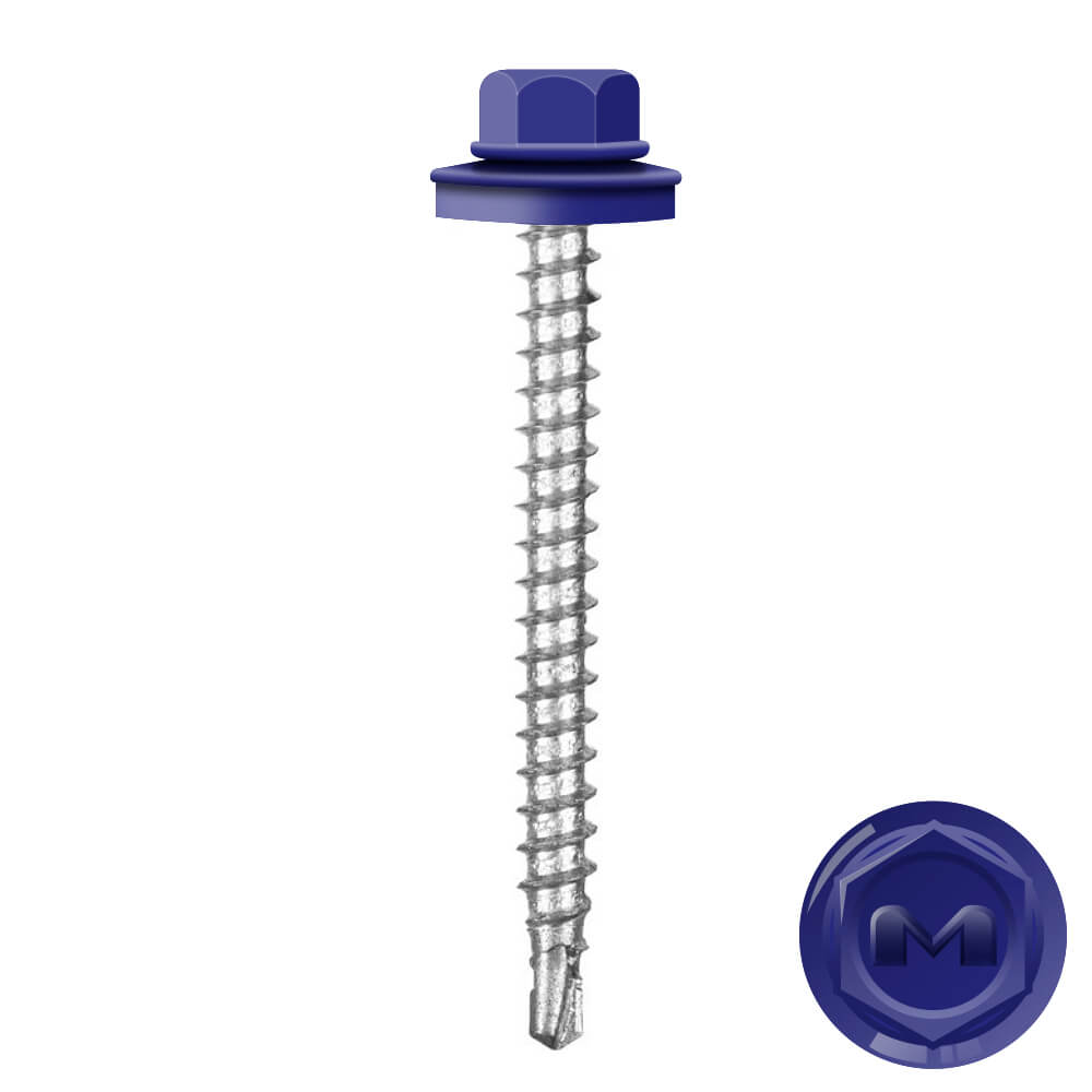 Кровельные саморезы Daxmer (Даксмер) по дереву цветом RAL5002 Синий Ультрамарин 4,8*50мм окрашиваются УФ-стойкой полиэфирной порошковой краской. Цинковое антикоррозийное покрытие обеспечивает длительный срок службы саморезов (не менее 25 лет). Специальная металлическая шайба с ЕРDМ - уплотнителем обеспечивает плотное прилегание профилированного металла (кровли) к деревянной обрешетке, а также препятствует попаданию влаги.