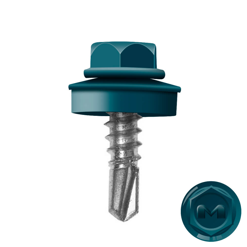 Кровельные саморезы Daxmer (Даксмер) по металлу цветом RAL5020 Синий Океан 5,5*19мм имеют частую резьбу, а специальная металлическая шайба с ЕРDМ-уплотнителем 2,8 мм обеспечивает плотное прилегание профилированного металла (кровли) к обрешетке, а также препятствует попаданию влаги. Также ЕРDМ-уплотнитель защищает от перепада температур (за счет высокого содержания каучука), который адаптируется под окружающую температуру и не позволяет кровле или забору «гулять», плотно прижимая листы к основанию.