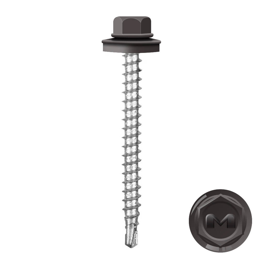 Кровельные саморезы Daxmer (Даксмер) по дереву цветом RAL8019 Темный Шоколад 4,8*50мм окрашиваются УФ-стойкой полиэфирной порошковой краской. Цинковое антикоррозийное покрытие обеспечивает длительный срок службы саморезов (не менее 25 лет). Специальная металлическая шайба с ЕРDМ - уплотнителем обеспечивает плотное прилегание профилированного металла (кровли) к деревянной обрешетке, а также препятствует попаданию влаги.