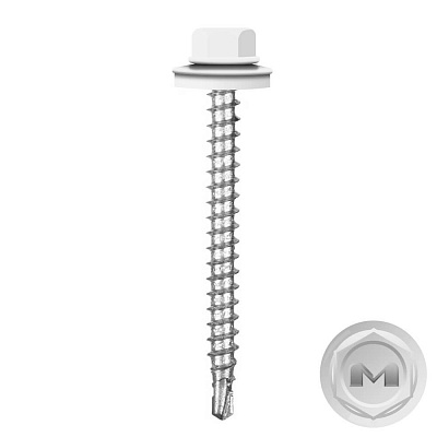 Кровельные саморезы Daxmer (Даксмер) по дереву цветом RAL9003 Белый 4,8*50мм окрашиваются УФ-стойкой полиэфирной порошковой краской. Цинковое антикоррозийное покрытие обеспечивает длительный срок службы саморезов (не менее 25 лет). Специальная металлическая шайба с ЕРDМ - уплотнителем обеспечивает плотное прилегание профилированного металла (кровли) к деревянной обрешетке, а также препятствует попаданию влаги.