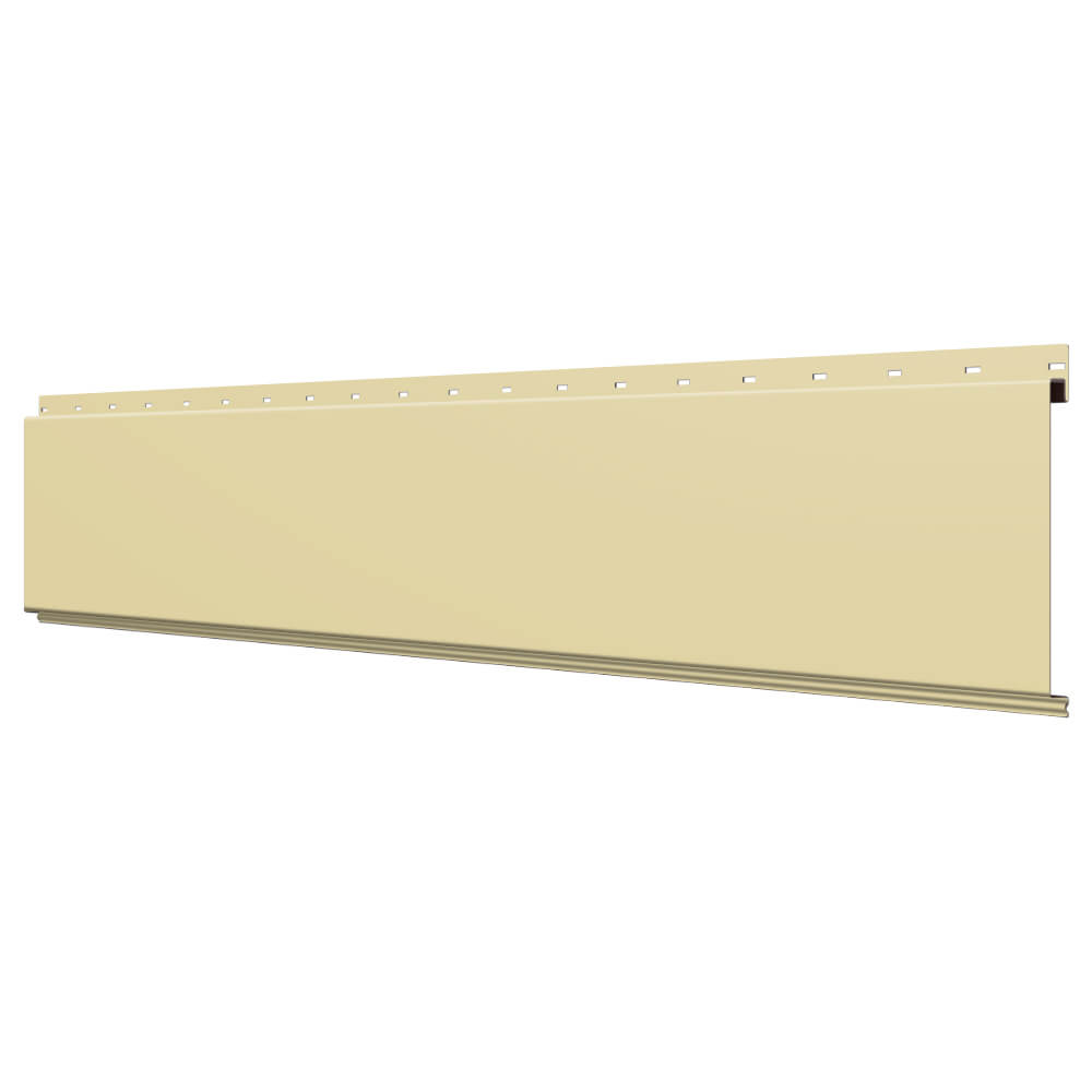Линеарная потолочно-стеновая панель ГЛАДКАЯ цвет RAL1014 Бежевый применяется в качестве софитов для подшивы крыши, наружной и внутренней отделки потолков, стен, фронтонов фасада дома в Благовещенске.