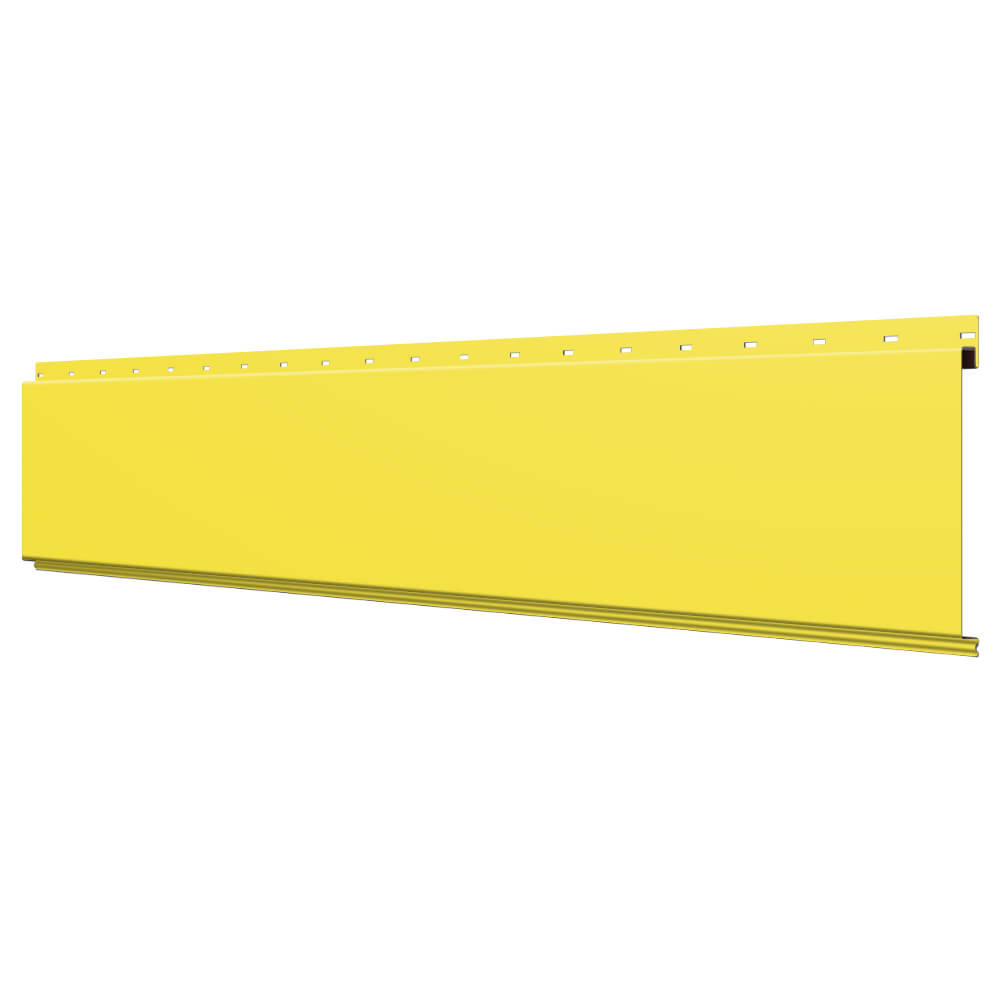 Линеарная потолочно-стеновая панель ГЛАДКАЯ цвет RAL1018 Желтый применяется в качестве софитов для подшивы крыши, наружной и внутренней отделки потолков, стен, фронтонов фасада дома в Благовещенске.