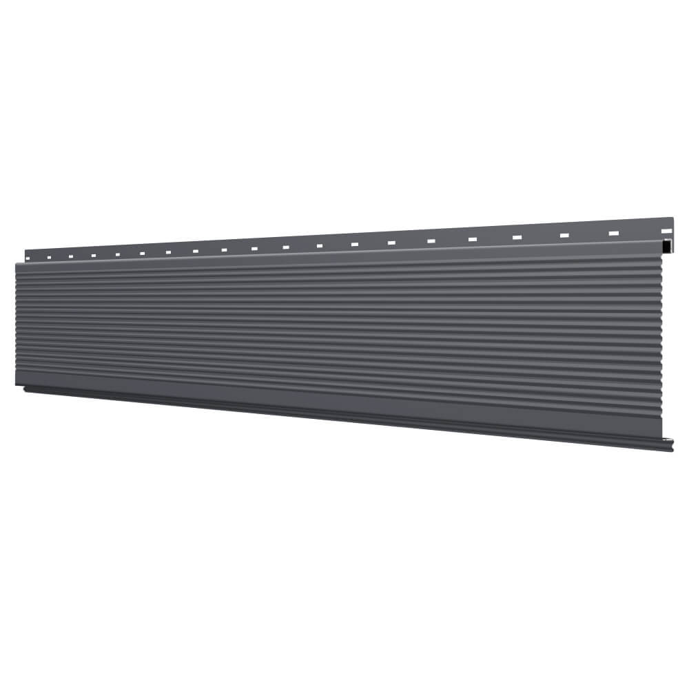 Линеарная потолочно-стеновая панель РИФЛЕНАЯ усиленная цвет RAL7024 Серый Графит применяется в качестве софитов для подшивы крыши, наружной и внутренней отделки потолков, стен, фронтонов фасада дома в Благовещенске.