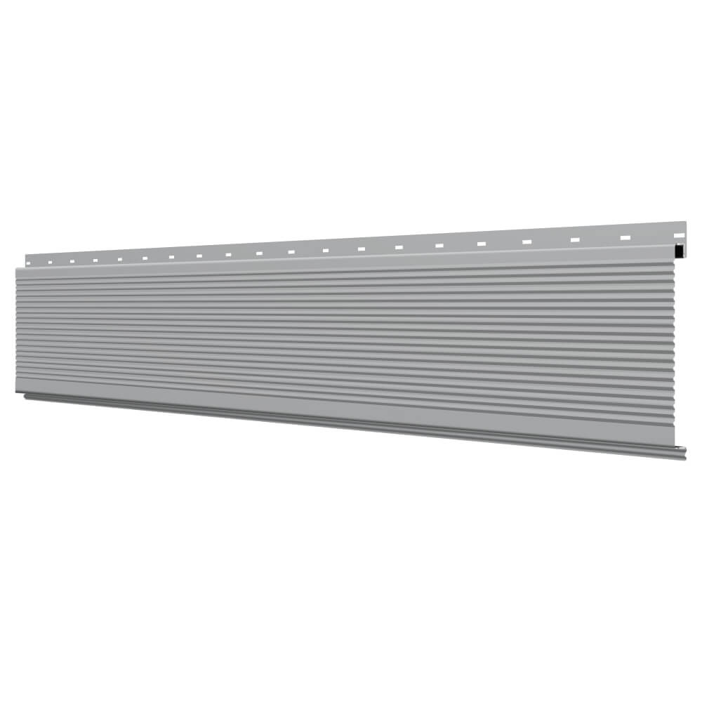 Линеарная потолочно-стеновая панель РИФЛЕНАЯ усиленная цвет RAL7004 Серый применяется в качестве софитов для подшивы крыши, наружной и внутренней отделки потолков, стен, фронтонов фасада дома в Благовещенске.