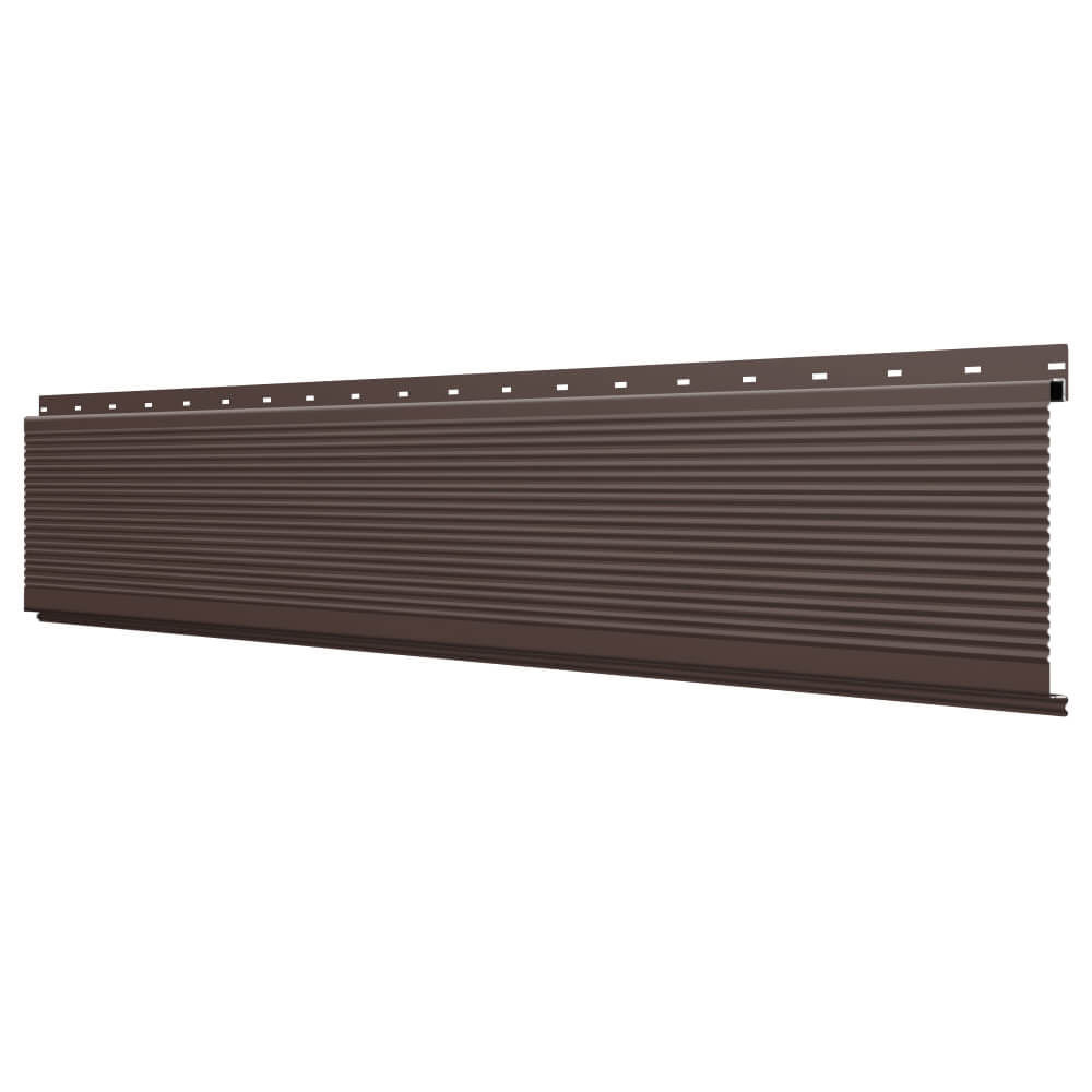 Линеарная потолочно-стеновая панель РИФЛЕНАЯ усиленная цвет RAL8017 Шоколад применяется в качестве софитов для подшивы крыши, наружной и внутренней отделки потолков, стен, фронтонов фасада дома в Благовещенске.