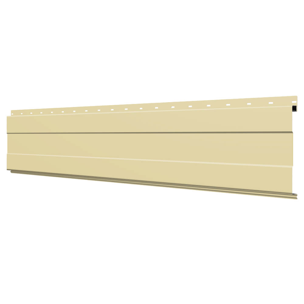 Линеарная потолочно-стеновая панель с ПОЛОСОЙ усиленная цвет RAL1014 Бежевый применяется в качестве софитов для подшивы крыши, наружной и внутренней отделки потолков, стен, фронтонов фасада дома в Благовещенске.