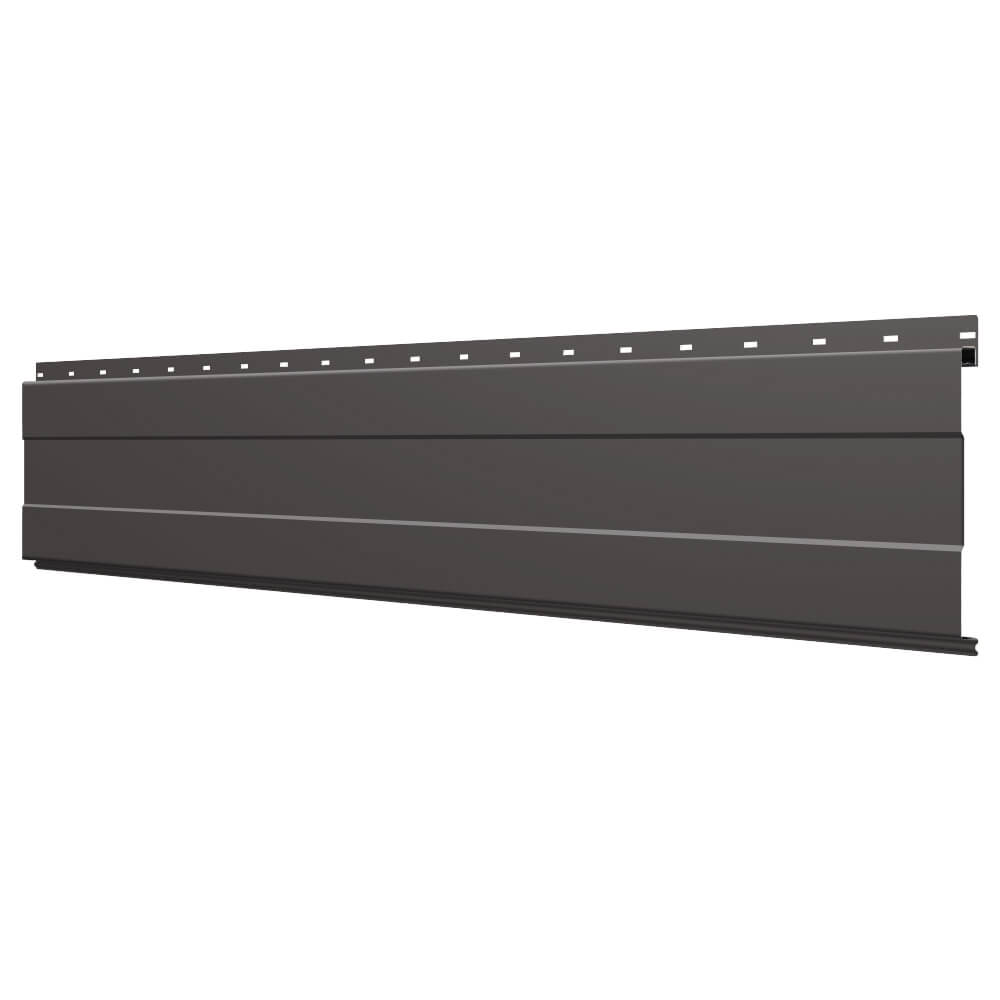 Линеарная потолочно-стеновая панель с ПОЛОСОЙ усиленная цвет RAL8019 Темный Шоколад применяется в качестве софитов для подшивы крыши, наружной и внутренней отделки потолков, стен, фронтонов фасада дома в Благовещенске.