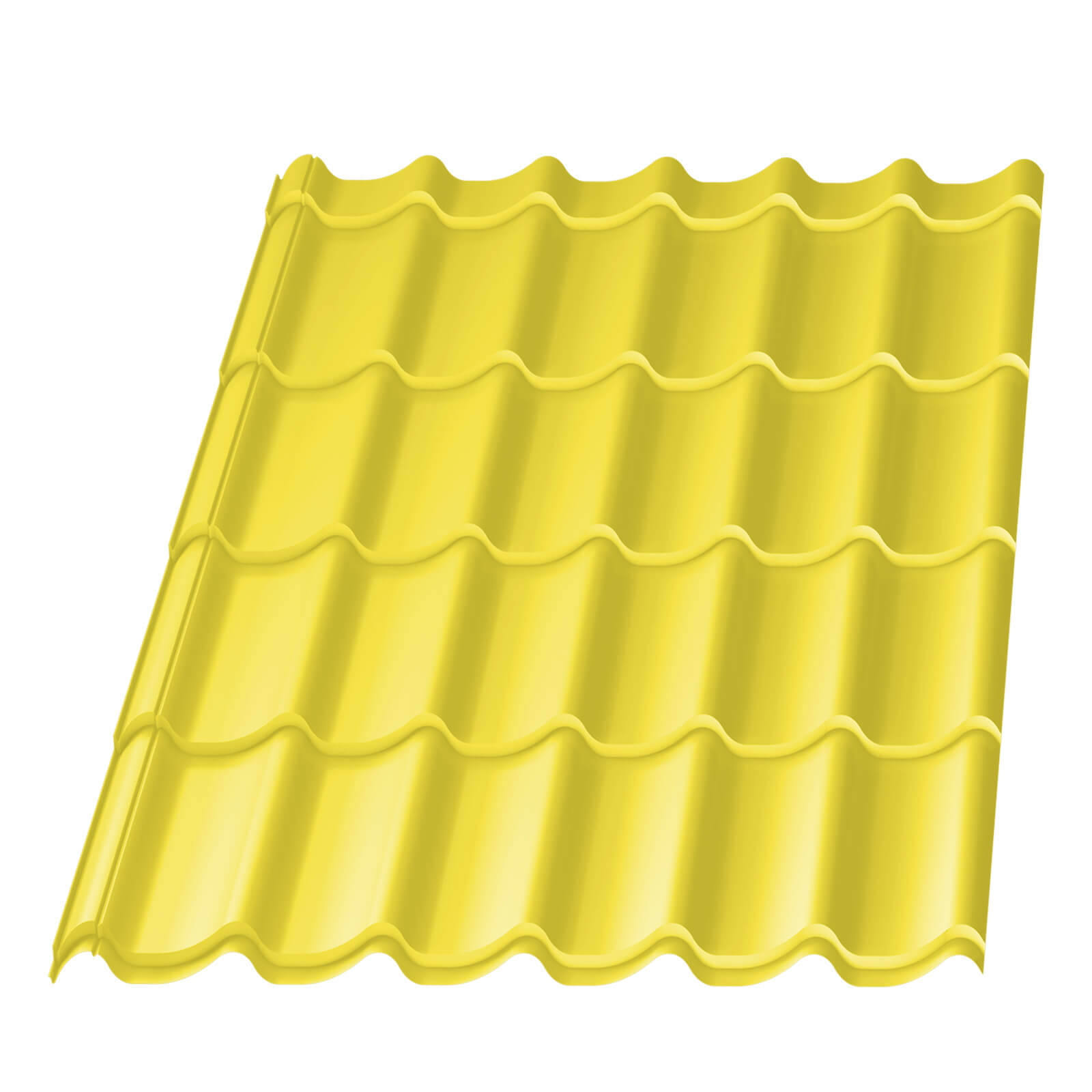 Металлическая черепица Меркурий RAL 1018 Желтый имеет профиль внешне на кровле напоминающий классическую керамическую черепицу. Меркурий — это обновленный аналог профиля металлической черепицы для кровли крыши. Форма профиля имеет богатый внешний вид напоминающий небольшие набегающие волны. Лучшие показатели герметизации сделали профиль Меркурий гарантом стабильной и долговременной службы на крышах в Благовещенске. Данный профиль отличается не только своим качеством, но и благородным внешним видом.