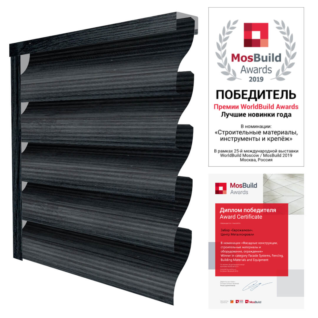 Обладая воздухопроницаемостью, еврожалюзи отлично подойдут для расположенных в низинах участков. Установленные под углом ламели не позволяют воздуху застаиваться и способствуют испарению ненужной влаги. Рельефная форма ламелей еврожалюзи не сравнится со стандартным забором — ограждение имеет визуальную глубину благодаря трёхмерным пластинам. Такой забор станет качественной акустической преградой, расположившись у автомагистралей и проезжих частей.