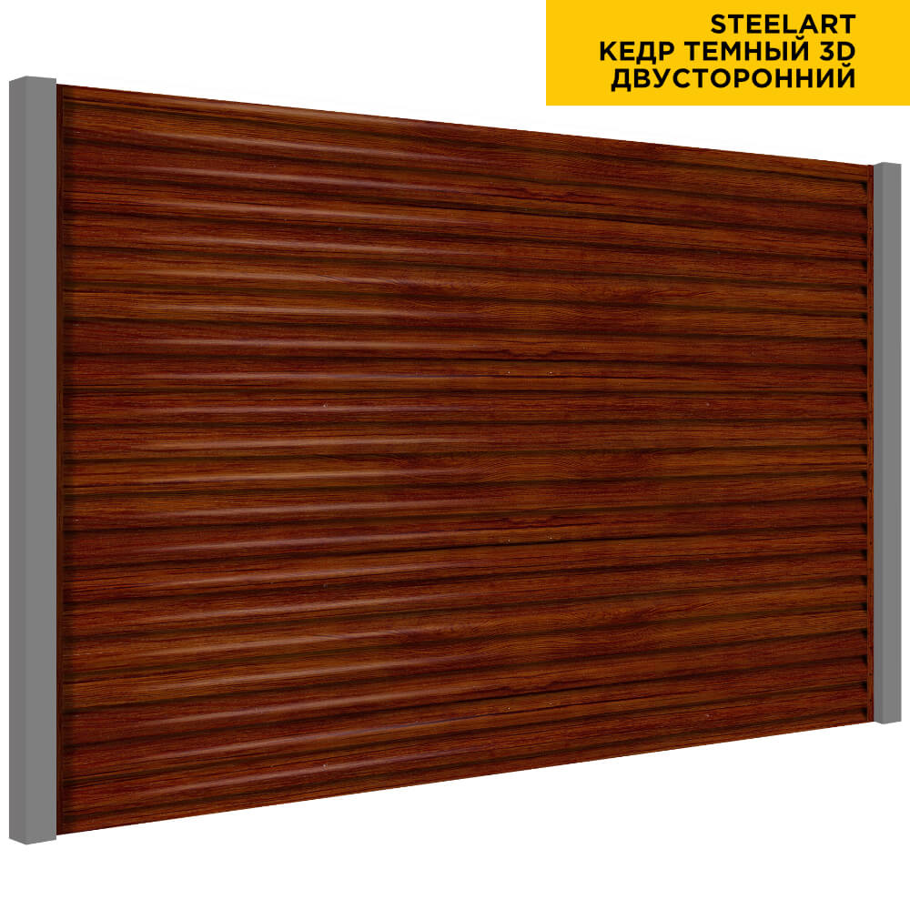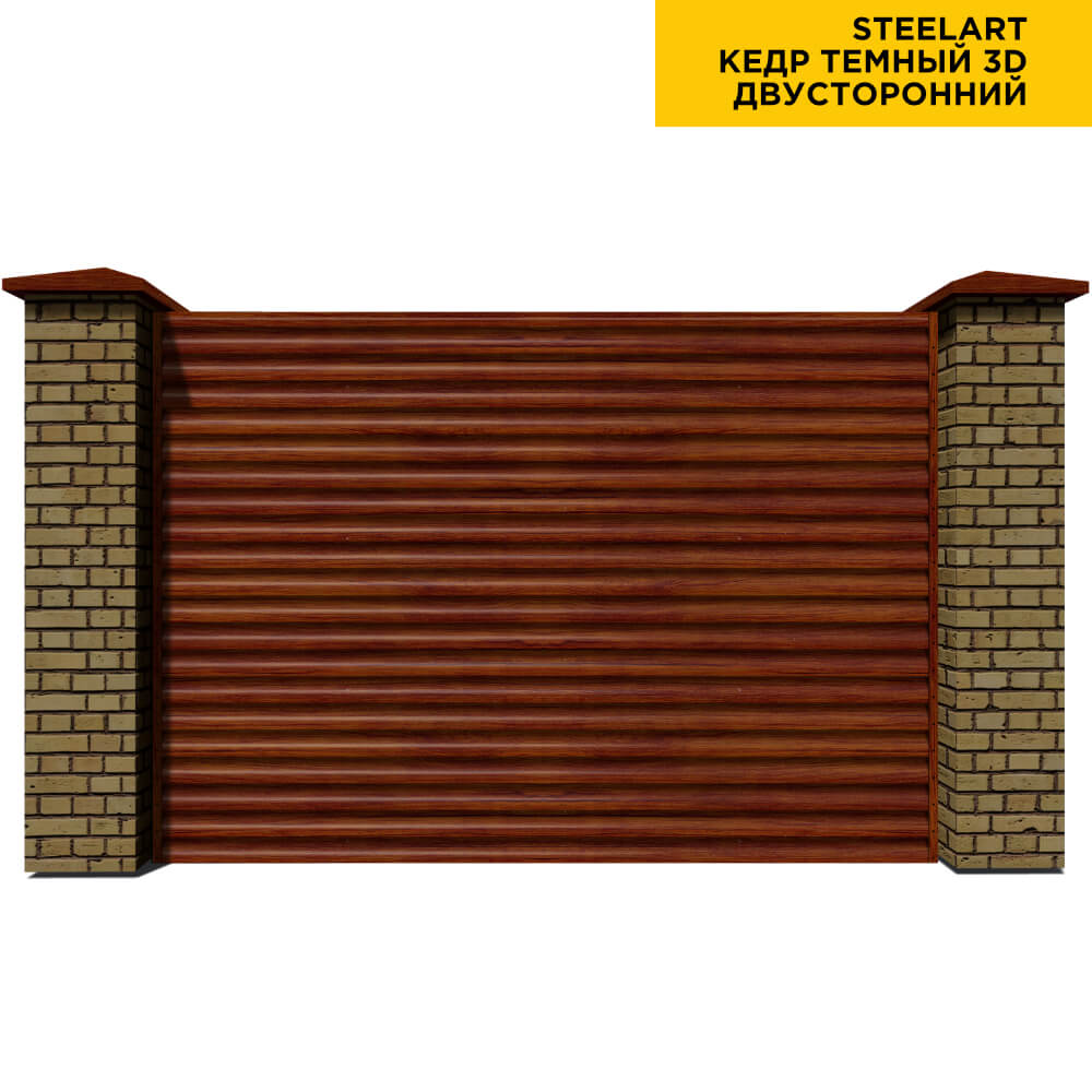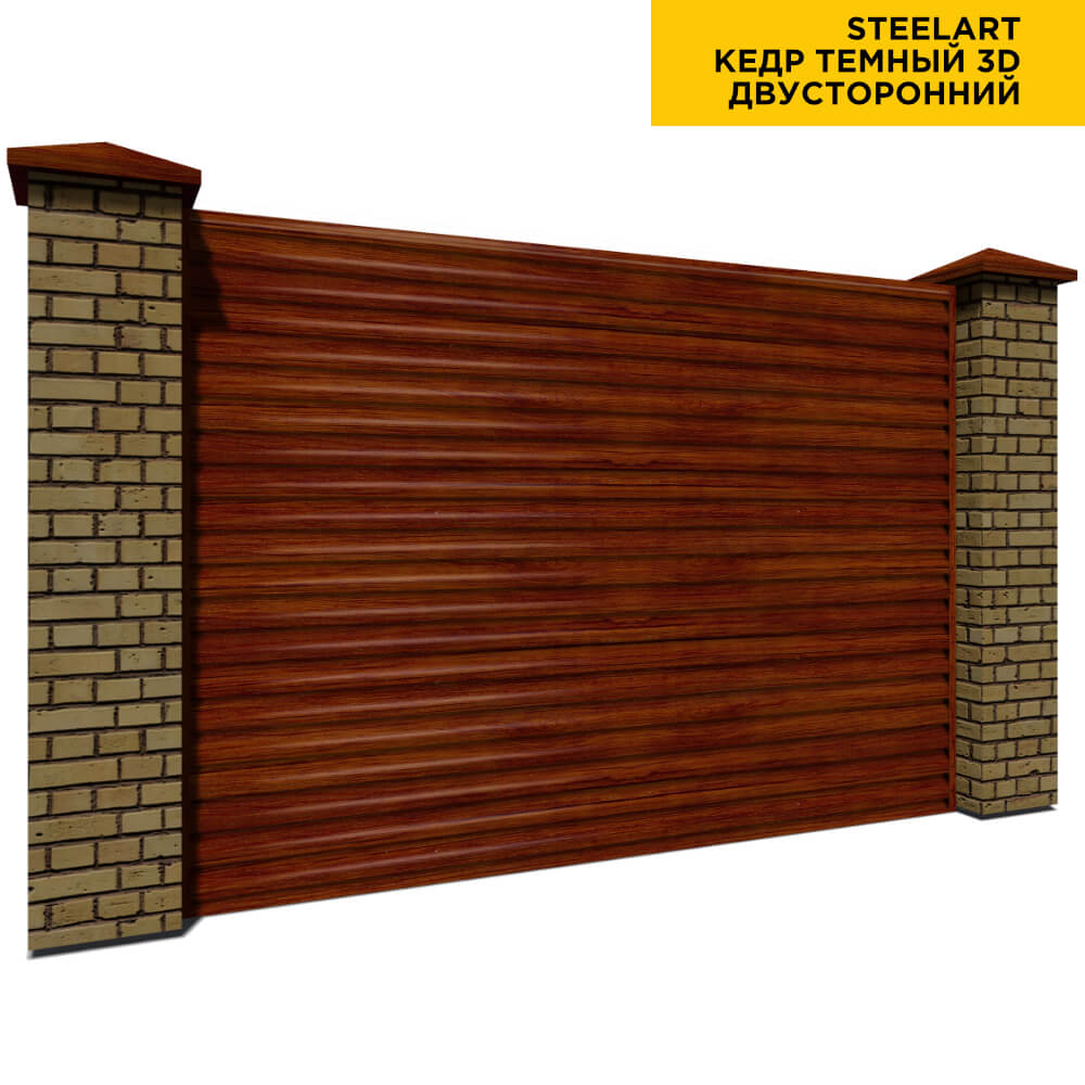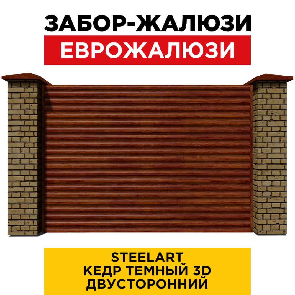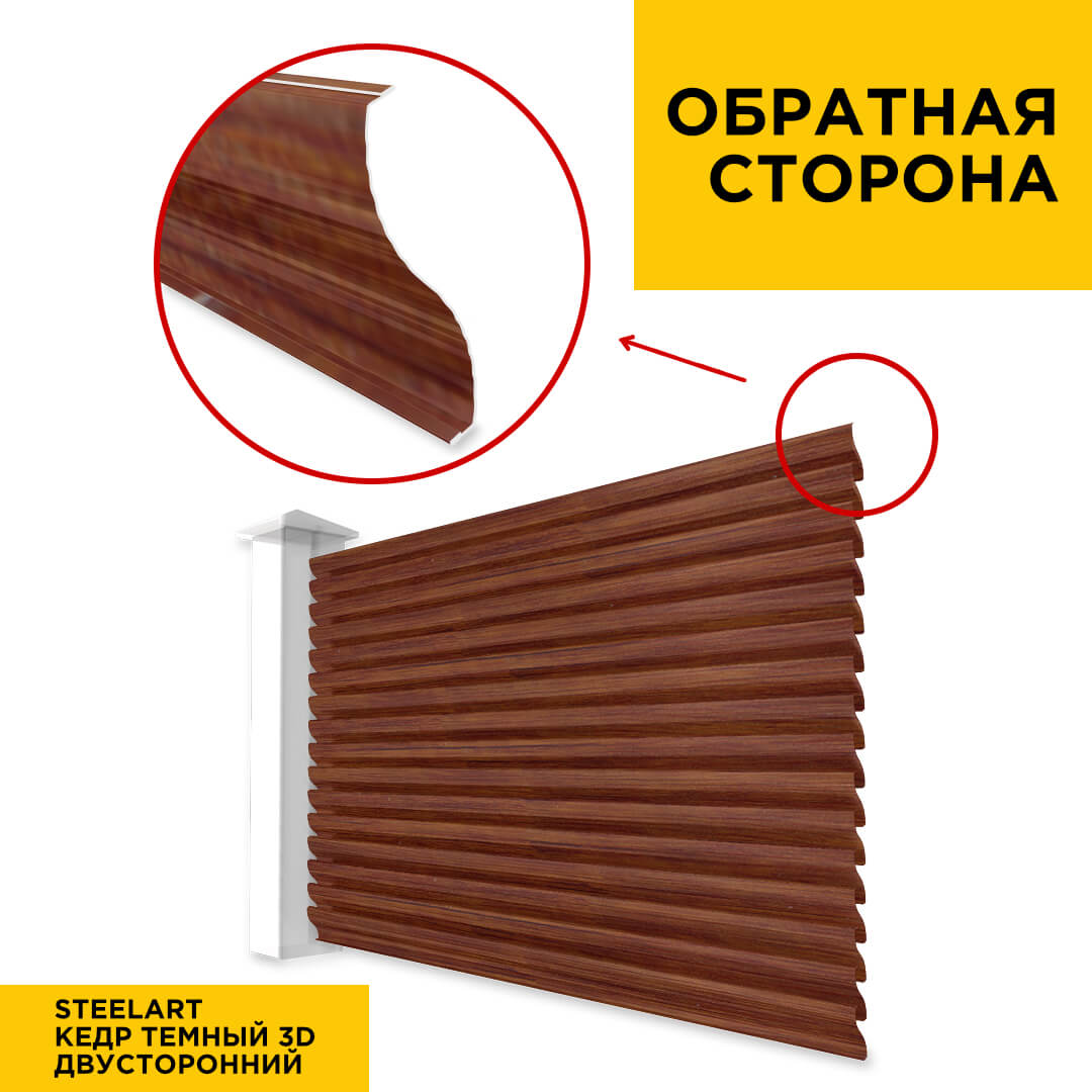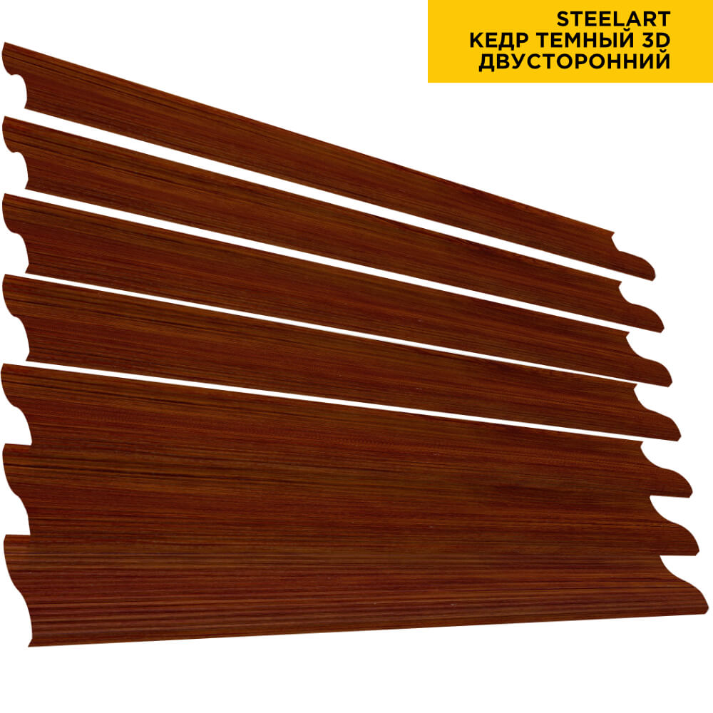 Ламель Еврожалюзи металлическая S-образная, цвет под дерево Кедр Темный 3D SteelArt Россия двухстороннее покрытие, длина любая кратно 1см под заказ - для забора-жалюзи, беседки, перголы в Благовещенске