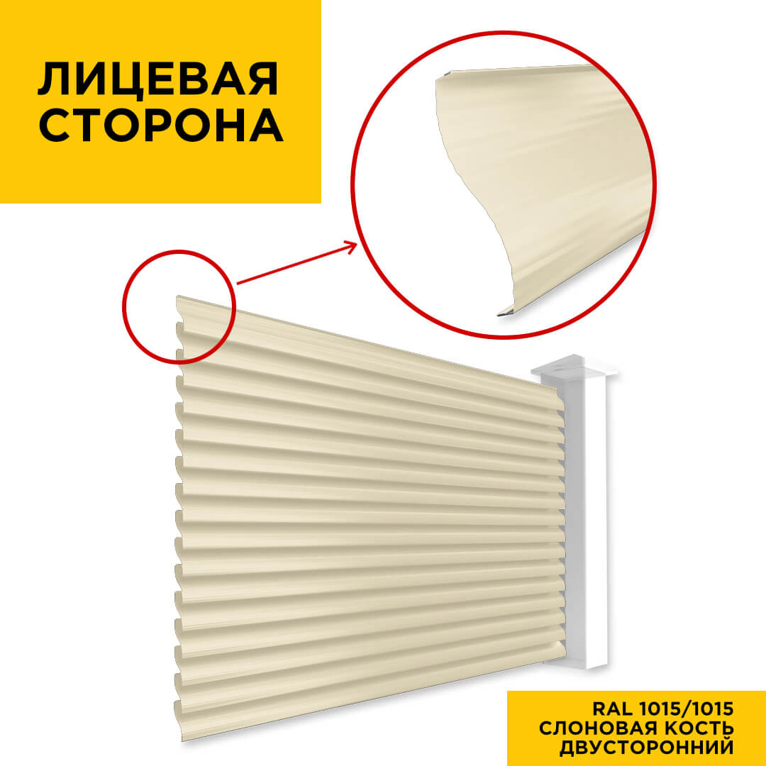 Ламель забора Еврожалюзи металлическая S-образная, цвет RAL 1015/1015 Слоновая Кость двустороннее покрытие полиэстер, длина любая кратно 1см под заказ - для забора-жалюзи, беседки, перголы в Благовещенске