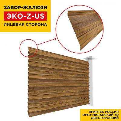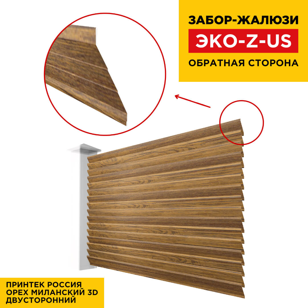 Ламель металлическая Z-образная усиленная ЭКО-Z-US, цвет под дерево Орех Миланский 3D Принтек Россия двухстороннее покрытие, длина любая кратно 1см под заказ - для забора-жалюзи, беседки, перголы в Благовещенске