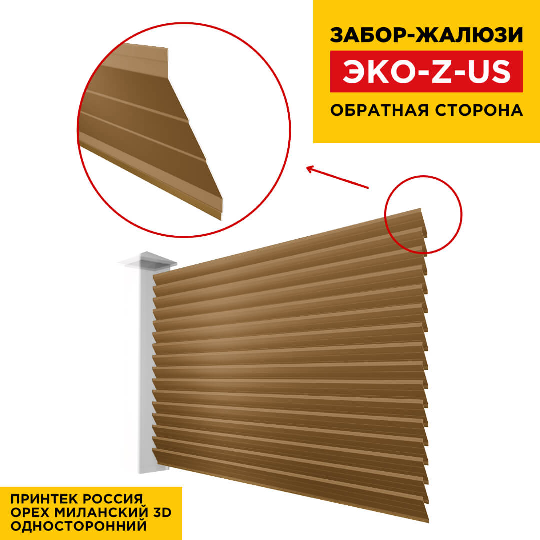 Ламель металлическая Z-образная усиленная ЭКО-Z-US, цвет под дерево Орех Миланский 3D Принтек Россия одностороннее покрытие, длина любая кратно 1см под заказ - для забора-жалюзи, беседки, перголы в Благовещенске