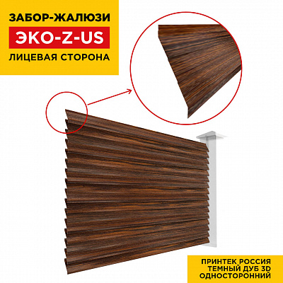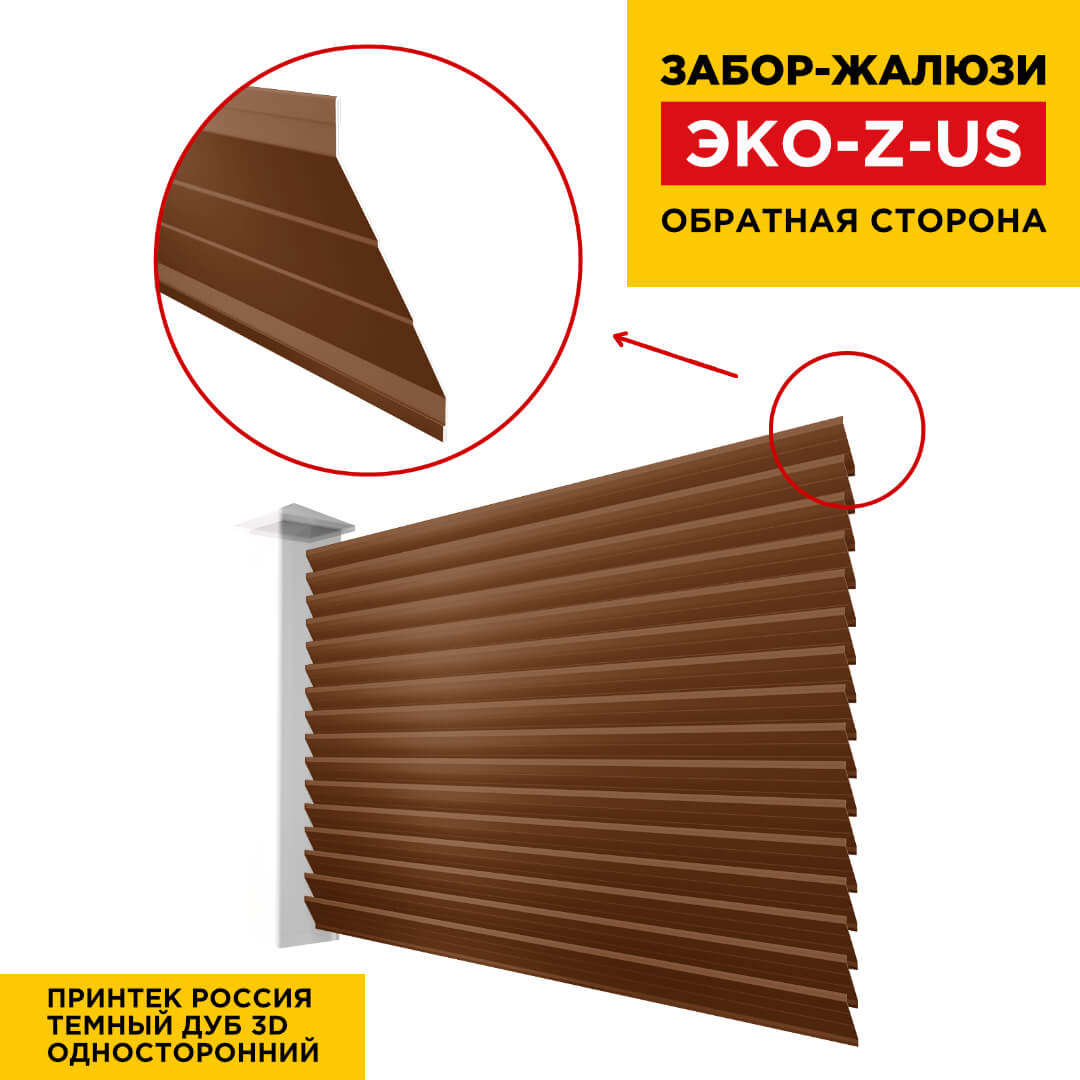 Ламель металлическая Z-образная усиленная ЭКО-Z-US, цвет под дерево Темный Дуб 3D Принтек Россия одностороннее покрытие, длина любая кратно 1см под заказ - для забора-жалюзи, беседки, перголы в Благовещенске.