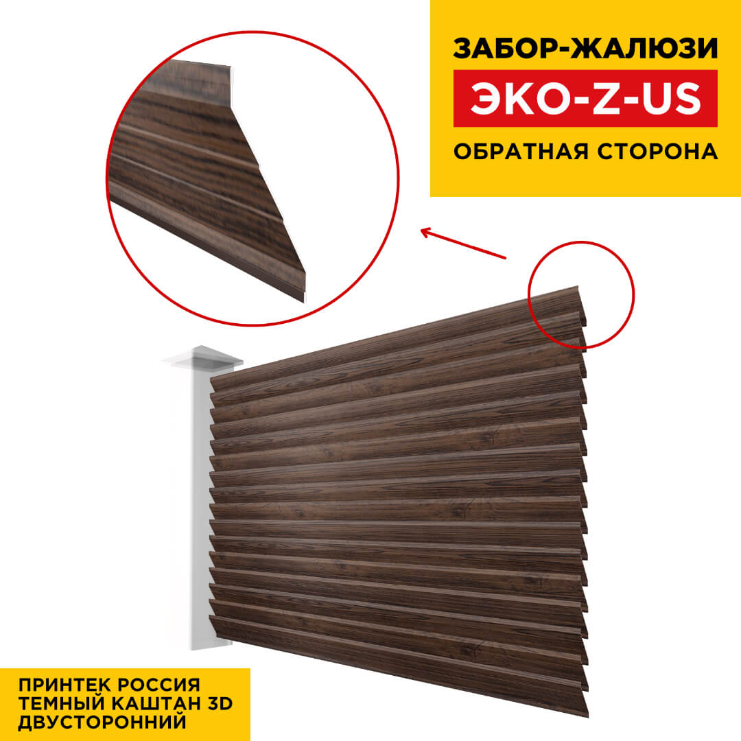Ламель металлическая Z-образная усиленная ЭКО-Z-US, цвет под дерево Темный Каштан 3D Принтек Россия двухстороннее покрытие, длина любая кратно 1см под заказ - для забора-жалюзи, беседки, перголы в Благовещенске