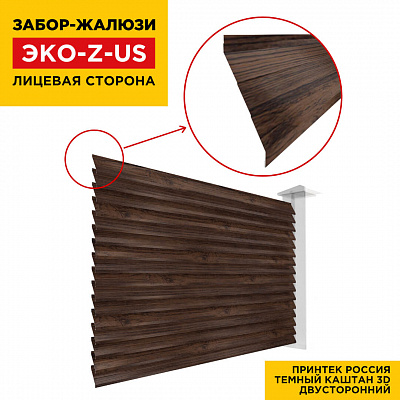 Ламель металлическая Z-образная усиленная ЭКО-Z-US, цвет под дерево Темный Каштан 3D Принтек Россия двухстороннее покрытие, длина любая кратно 1см под заказ - для забора-жалюзи, беседки, перголы в Благовещенске.