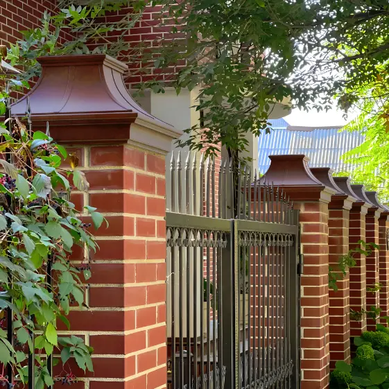 Колпак Monblan Premium Коричневый на столбах кирпичного забора в Благовещенске