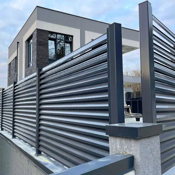 Забор Еврожалюзи RAL7024 Серый Графит с навесом для автомобиля, Забор жалюзи ЭКО-Z-US RAL7024 Серый Графит двусторонний усиленный