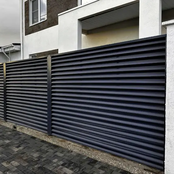 Секция забора жалюзи из ламелей еврожалюзи RAL9005 Черный с кирпичными столбами анфас двусторонний Вид спереди забор ламели еврожалюзи RAL9005 Черный двусторонний Вид сзади забор ламели еврожалюзи RAL9005 Черный двусторонний Ламели еврожалюзи RAL9005 Черный двусторонний сертификат Ламель Еврожалюзи RAL9005-9005 Черный двусторонний для заборов-жалюзи, беседок, пергол