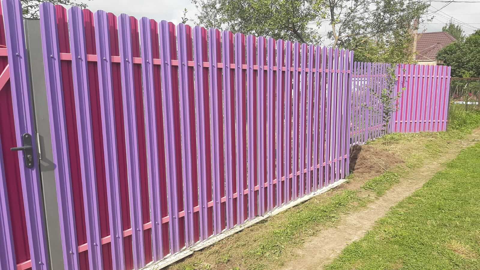✅ Вид секции: шахматка ✅ Профиль штакетника: ЭКО-М 95мм ✅ Цвет и покрытие: RAL4005 Сиреневый, RAL4006 Пурпурный полиэстер