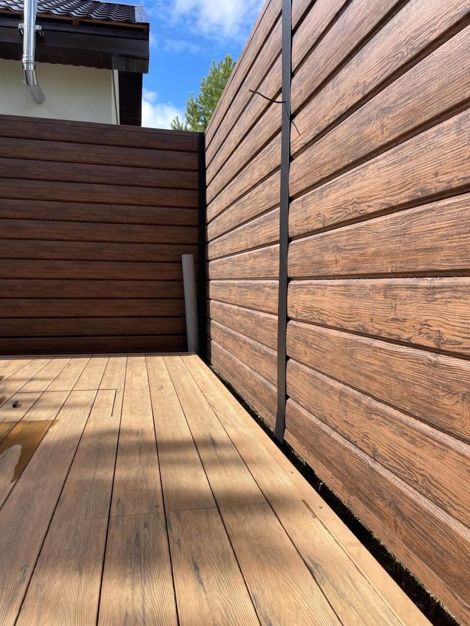 Металлосайдинг ЕВРО-БРУС под брус Темный Каштан 3D Принтек под дерево