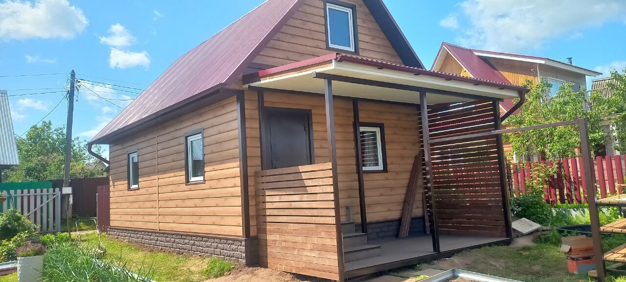 Отделка фасада дома металлическим сайдингом ЕВРО-БРУС
