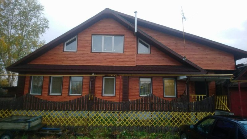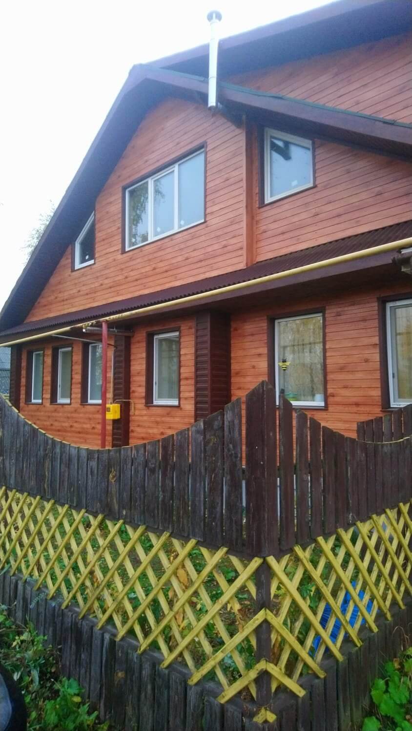 Отделка фасада дома профлистом под дерево