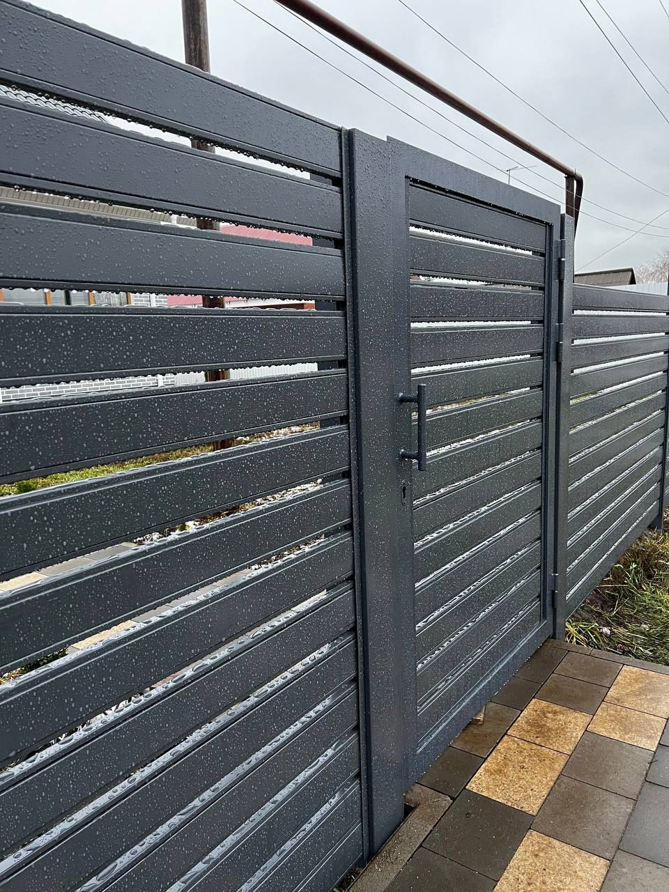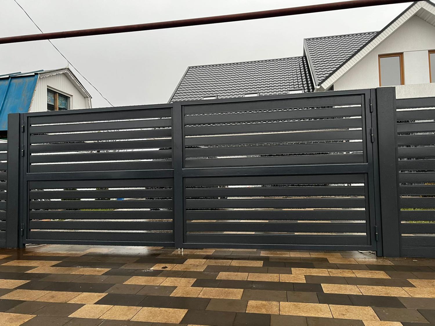 Забор-ранчо из металлопланкена с входной группой