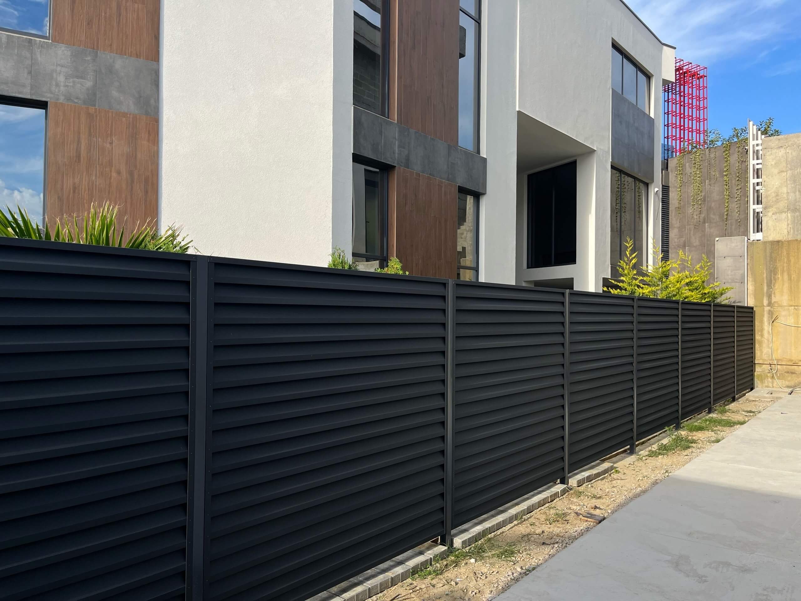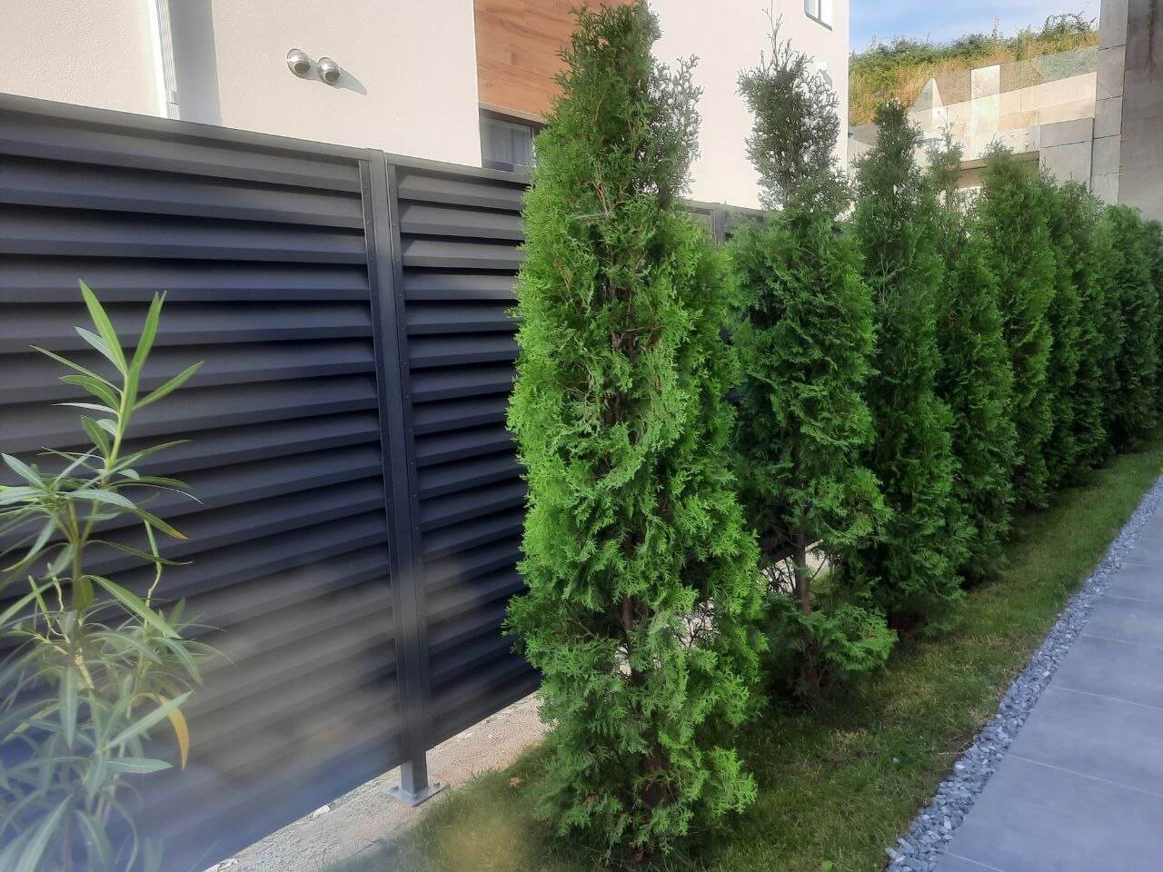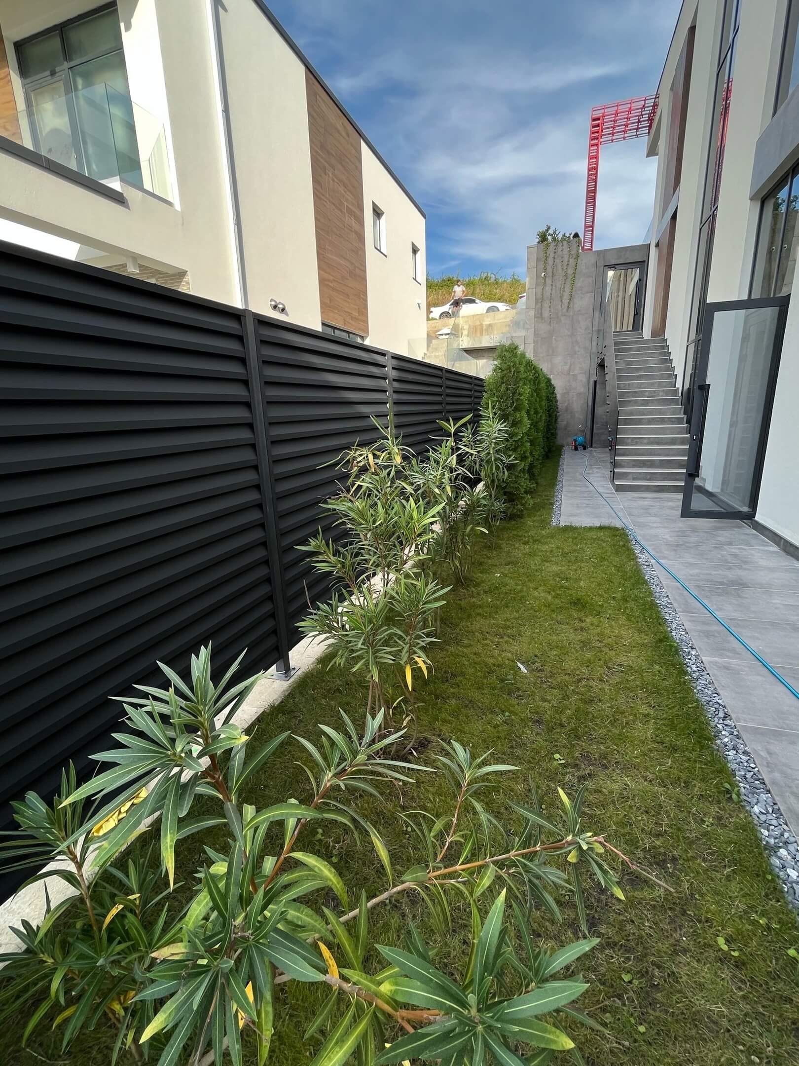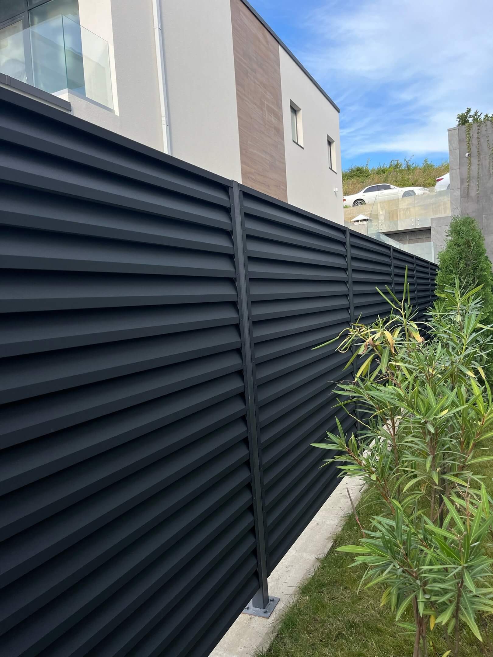 Секция Реснички RAL7024 МАТТЕ Серый Графит матовый двустороннего забора вид спереди Секция Реснички RAL7024 МАТТЕ Серый Графит матовый двустороннего забора вид сзади Ламель Реснички RAL7024 МАТТЕ Серый Графит матовый двустороннего забора